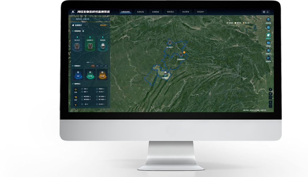 生物多样性监测系统产品概述: 通过布设在前端的监测设备采集监测数据,以一张图的形...